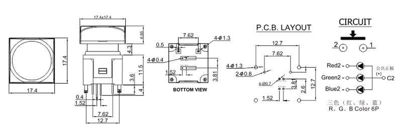 帶燈按鈕開關(guān)PB06-AC-WT-RG-NN-DY