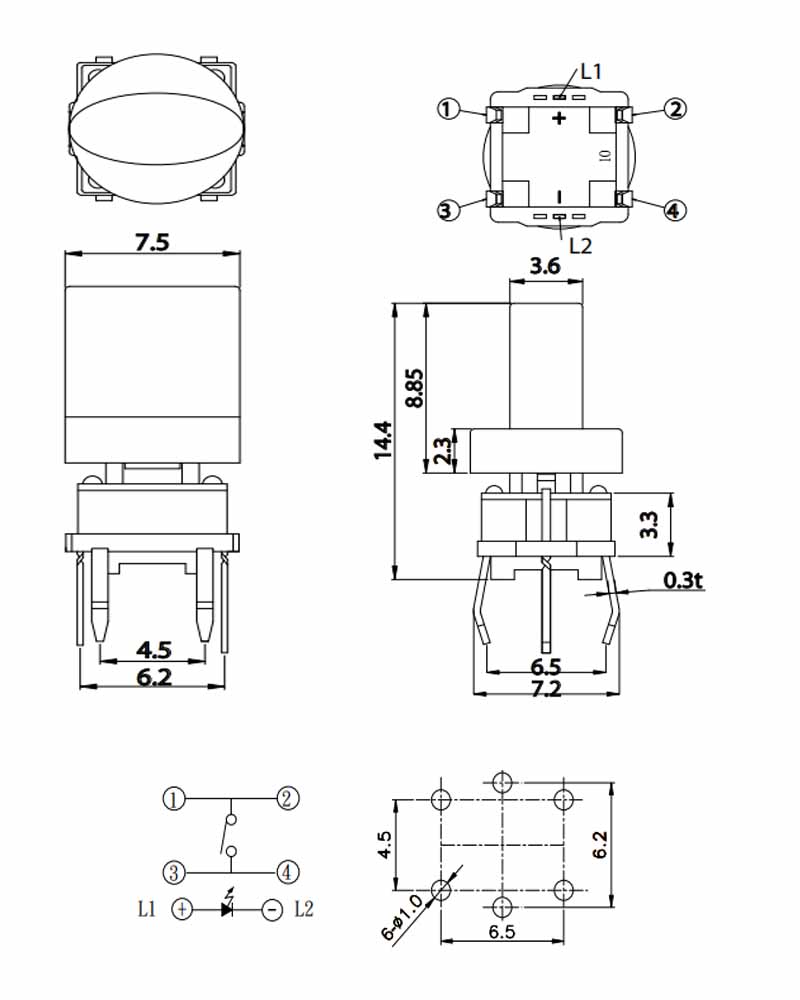 帶燈輕觸開關(guān)TS系列,結(jié)構(gòu)簡單、功能簡單,低電壓低電流,在消費(fèi)類電子產(chǎn)品上很常見的開關(guān)。有插件DIP,貼片SMD;LED燈有單色、雙色和RGB全色;不僅有多種蓋子可以搭配,更能呈現(xiàn)多元的外觀效果。