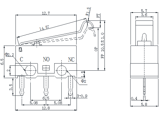電氣參數(shù):1A 250VAC 3A 250VAC