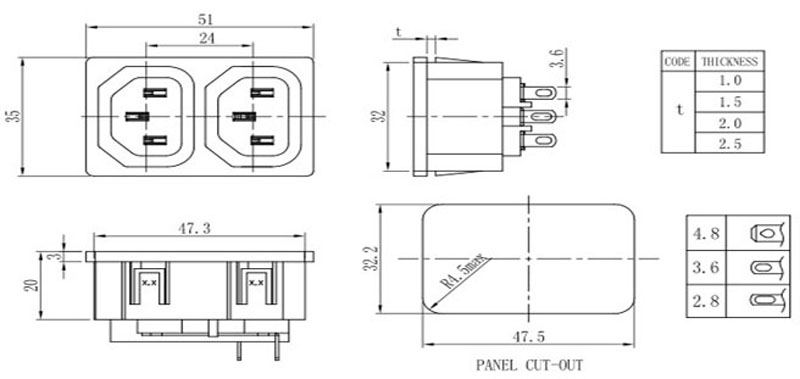 AC電源插座系列,單插、二合一、三合一保險(xiǎn)插座等多種規(guī)格,大電流10A ,15A,產(chǎn)品通過(guò)UL VDE CCC CB等認(rèn)證,常見(jiàn)于家用電器,音響功放機(jī)等
